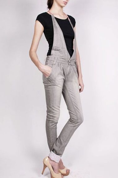 Модный комбинезон из серого денима.